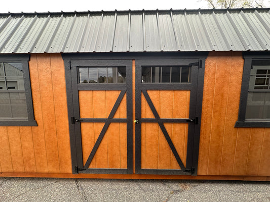 Lofted 10x20 Shed - Butternut Stain with Black Trim & Roof